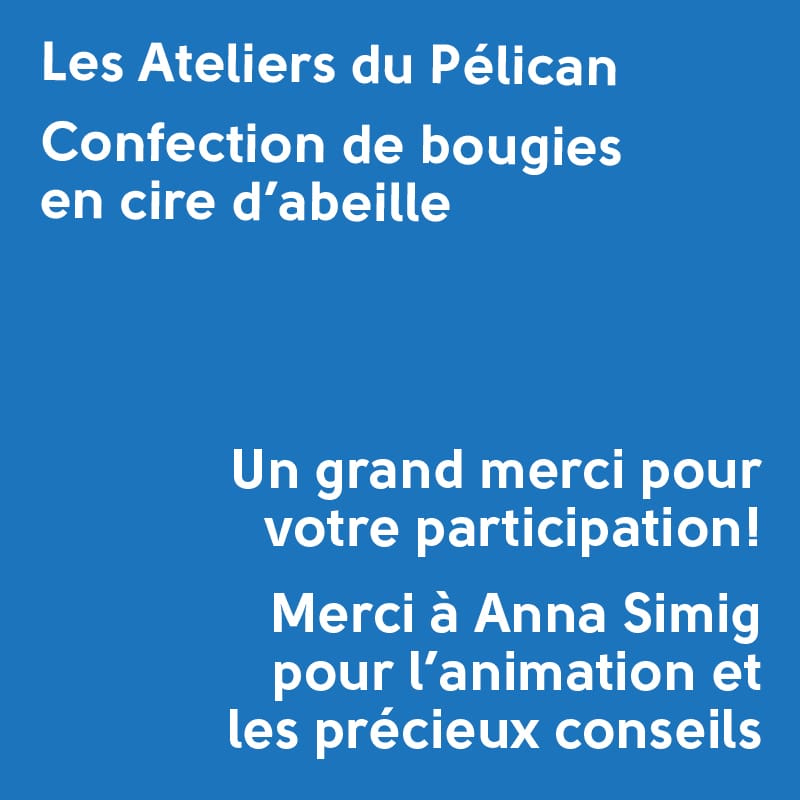 La confection d’une bougie prend environ une heure, vous pouvez donc rejoindre l’atelier à tout moment, mais au plus tard 1 heure avant la fin de chaque session – 20h pour le 21 novembre et 16h pour le 27 novembre.